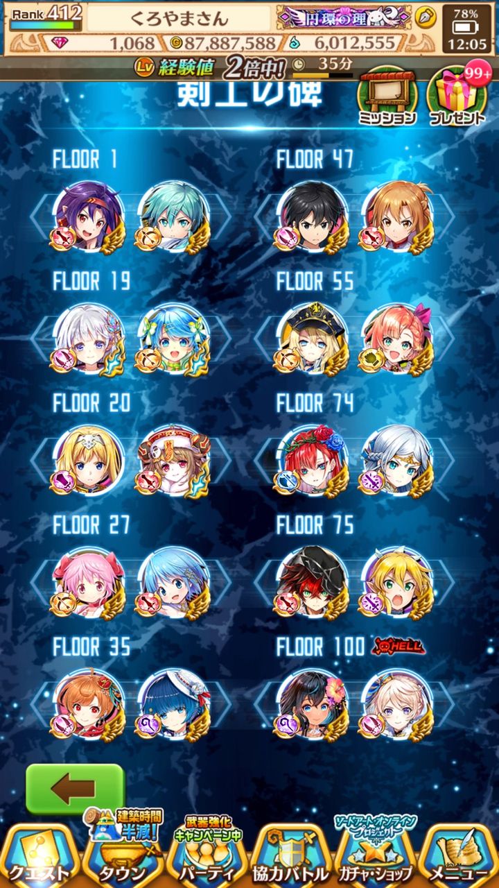 たとえばアインクラッド攻略戦のステージ